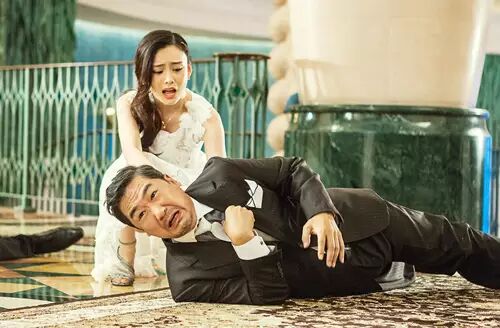 ▲老戏骨张国立饰演一位土豪,同时也是杰克(成龙饰)好友,在高价竞拍到的宝石被夺之后,他心碎了一地