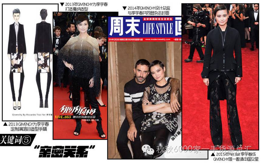 再说,被天朝人民视做圭臬的“关系”生存法则,在时尚圈尤其行得通。无论是品牌还是设计师本人,跟明星之间合作都是需要有“勾搭关系”的。这里没有任何贬义的意思。“奢侈品牌与本土明星的结合,更应借助于精密而周全的长期规划,而绝非瞬间的火花效应”,对于奢侈品牌而言,选择代言人是一项深思熟虑后的决定,少不了前期挑选和培养的过程。无论是范冰冰之于LV,还是周迅之于CHANEL,彼此间的成功合作就是长达数年的“勾搭”作用下的结果。而设计师与明星的交情在此时也会显得尤其重要,品牌的设计总监们选择跟自己关系良好的艺人作为品牌代言人,这是时尚圈的“潜规则”——其实无关私心,对设计师而言,有什么比让自己的灵感缪斯去代表自己的品牌形象,更直观的传达自己设计理念的方式呢?Riccardo跟李宇春的缘分从2013年为她操刀Why Me演唱会服装开始,两年内不仅两度为李宇春定制戛纳战袍,邀请李宇春前往巴黎观秀,两人甚至还姿态亲密地一起登上过中国杂志的封面。跟GIVENCHY关系好的中国女明星不少,但最后今年的Met Ball上,李宇春是GIVENCHY唯一邀请的中国女星。如今发生的事情在当时已经有了征兆。选谁当代言人?品牌心里几年前早就打好了算盘!