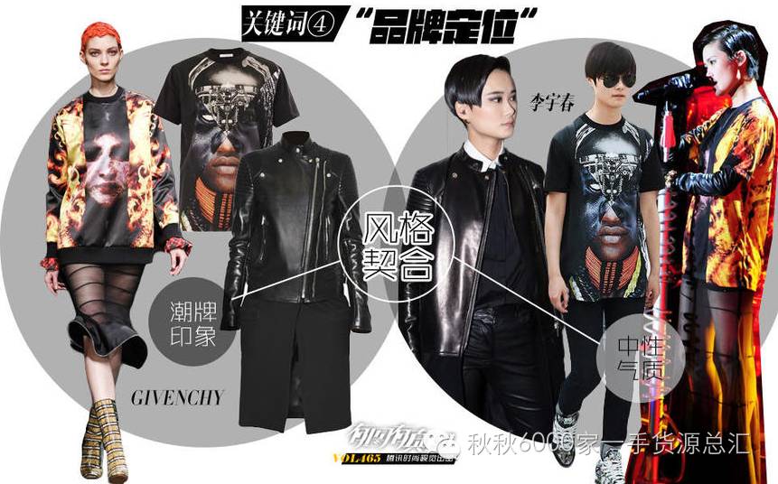 对于GIVENCHY而言,除了大牌在中国挑选代言人时那些通用的法则,它还有属于自己的眼光和标准。不同品牌拥有不同风格和受众定位,代言人形象必须契合品牌定位,才能为品牌发挥正面的营销作用,否则反而适得其反。CHANEL早前曾找来但是最红的华人女歌手李玟担任亚洲区代言人,但遭到了以香港贵妇为代表的VIP客户们的集体抵制,大多数是认为李玟的热辣性感形象与CHANEL的优雅高贵极不合衬。而GIVENCHY,自Riccardo Tisci入主之后,曾经优雅的品牌印象逐渐往潮牌方向转变,风格中多了不少暗黑元素和中性色彩,正契合李宇春硬朗的特质。且不说80后的李宇春的粉丝在年龄上正好是最追逐潮流的那一批人,即GIVENCHY的目标受众群;单从李宇春对GIVENCHY服装的诠释效果来看,模特架子、大牌气场的李宇春,的确也是GIVENCHY的不二之选。