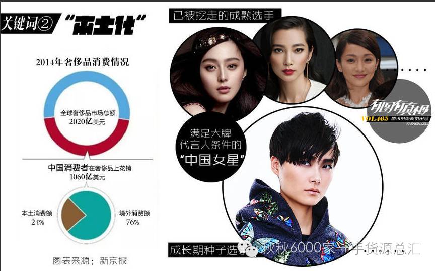 李宇春此次代言,是Riccardo Tisci执掌GIVENCHY以来品牌首张亚洲面孔单人广告。然而,作为全球代言人而言,国际认知度更高的好莱坞影星一直以来都是品牌更热衷的人选,为什么这次选了来自中国的李宇春?可以说,针对中国市场的“本土化”优势,是GIVENCHY选择李宇春的又一个原因。中国已经成为全球奢侈品消费的最大市场之一,天朝人民在去年几乎买走全球近一半的奢侈品,这股来自东方的疯涨的购买力,令西方的奢侈品牌们也不得不低下它们高贵的头颅。此时,与一位中国知名的本土明星捆绑销售,才能快速提高品牌认知,从而让中国消费者买账。但如前文所言,奢侈品牌对明星的段位要求可是很高的,中国的顶尖明星资源却很稀缺,当成熟的人选如双冰和周迅这些已经被竞争对手们哄抢得七七八八,像李宇春这种新一代偶像、并处在上升期的种子选手,品牌自然是该出手时就出手!