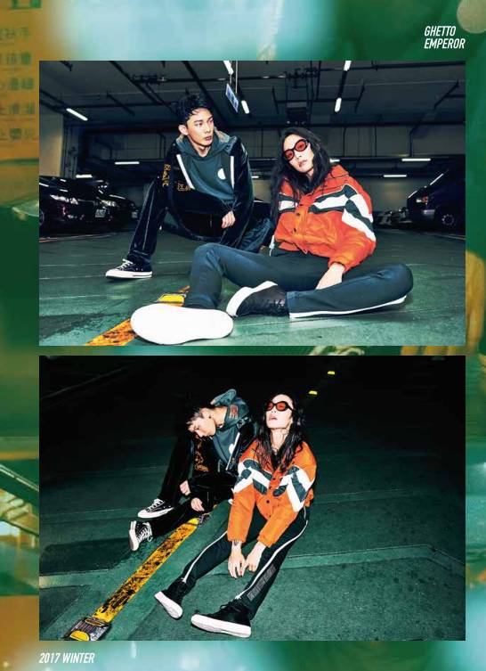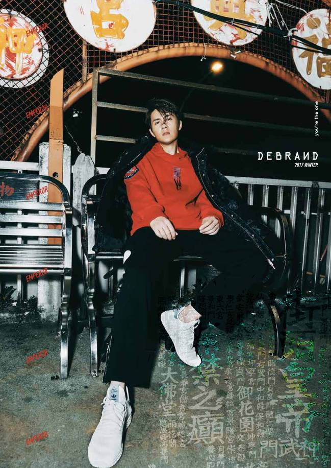 「街头皇帝」的DEBRAND产品概念是包含Neo-Retro 的Futuristic 风格,从90年代运动服、大学服的风格翻新到金属色、大翻领及新式唐装的庞克碰撞,在在突显了最街头的新式复古潮流,运动款长裤及长版羽绒服固是不能缺少的冬季元素,但是增加了阔腿的版型或是透视的工法,让千篇一律展现了潮流趣味。