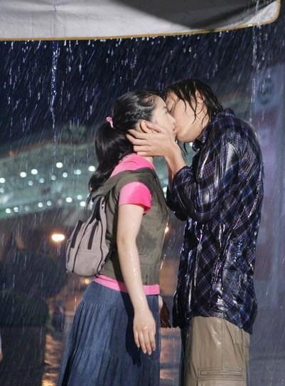 日版头发都没湿,还在营造唯美意象,有一种蒙蒙的柔光罩着的感觉,是保证整个偶像剧制作的档次。