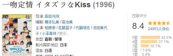 1996年森田光则执导的日本改编电视剧 《恶作剧之吻》(一吻定情),由“世纪末的美少年”柏原崇、“国民美少女”佐藤蓝子主演。