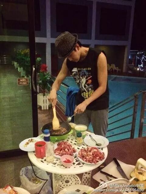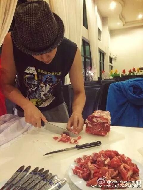 早前Mike就在微博上晒过自己给整个剧组做菜的技能。