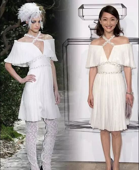 周迅身穿2010年香奈儿春夏款,出席电影发布会将CHANEL精致靓丽完美演绎,配上她那精灵气质让人耳目一新。