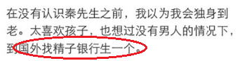这里所说的其实是使用供精(即女方使用精子库内匿名供精者的精液进行辅助生育治疗),主要有供精人工授精和供精试管婴儿两种形式。国内要求使用供精者必须是法定夫妻,具有生育指标,男方具有相应的使用供精的适应症。在医务人员向患者夫妇介绍所有可行的治疗方案后,患者夫妇仍坚持采用供精而放弃使用自身精子的,在签署相关知情同意书后,可以考虑使用供精。