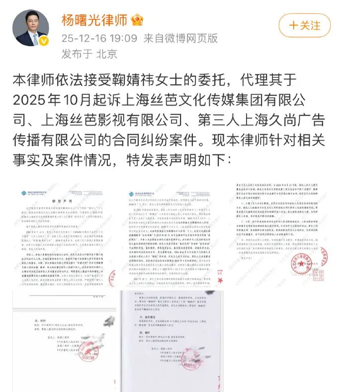 这边丝芭晒笔迹鉴定报告,说签名属实,还指责鞠婧祎是忘恩负义。