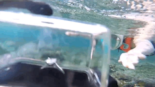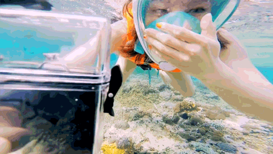 下水后,他拿着被保护在防水罩中的钻戒,缓缓游向女友。这个过程视频里大概持续了1分钟。但相信实际上会比这个时间长。