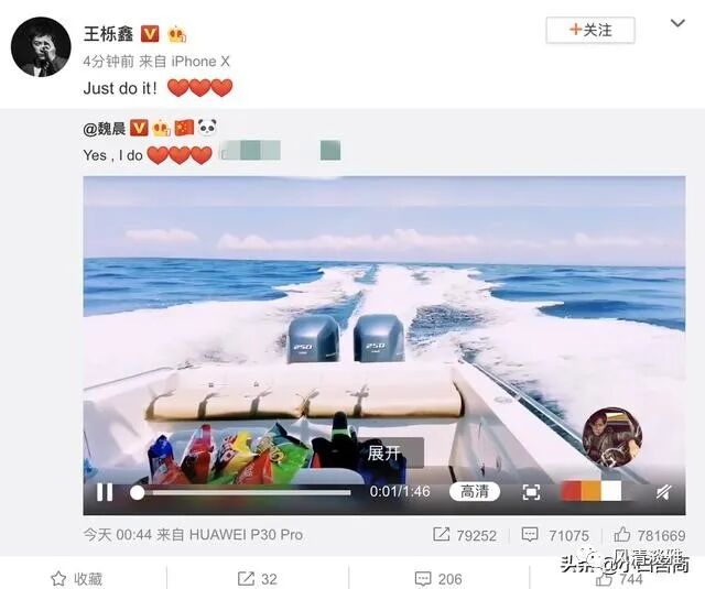 凌晨,他在社交平台晒出一段水下视频,并配文:“Yes , I do。 ”宣布成功求婚女友。