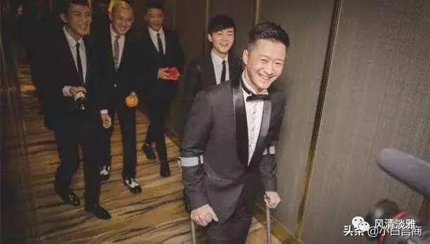 那一年,受了伤的吴京,连自己的婚礼都是拄着拐杖参加的。