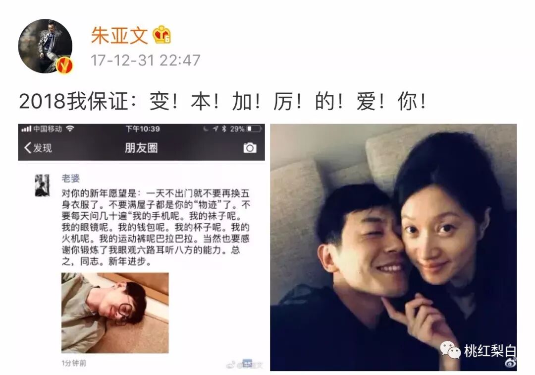 在社交软件上、媒体采访中朱亚文都大大方方的表达了对妻子的爱,没有任何躲藏遮掩。