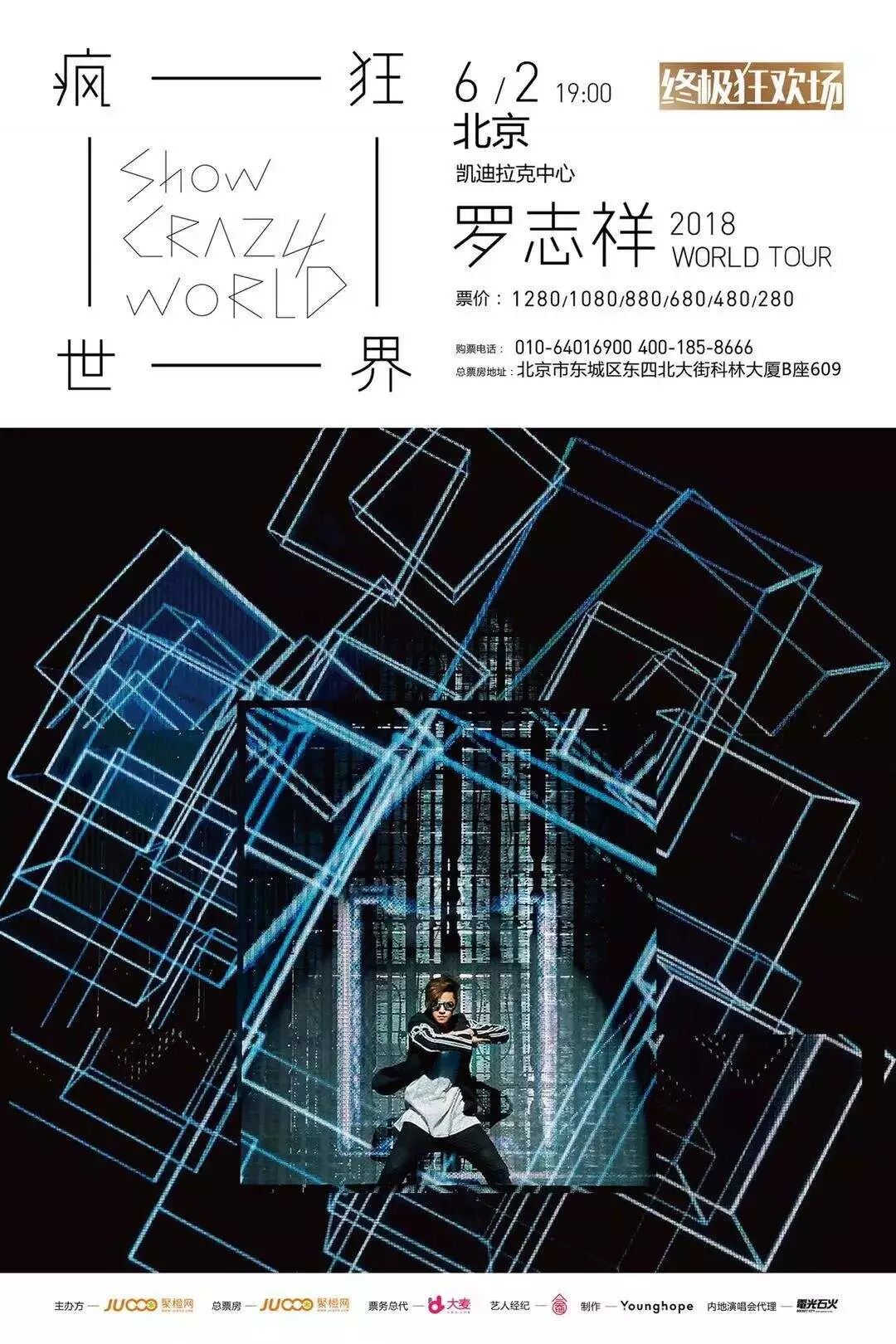 2018年6月2日,亚洲舞王罗志祥携全新版疯狂世界巡回演唱会再登帝都北京,将带来新的Surprise,在凯迪拉克中心与您共享狂欢趴。
