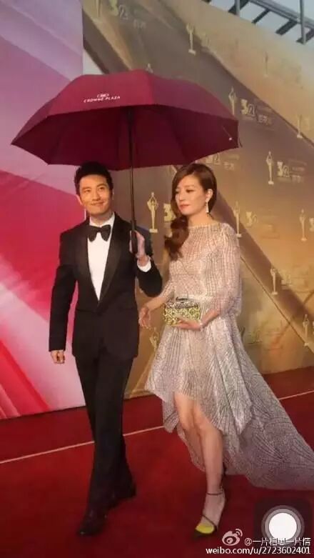 2014年百花奖的现场,黄晓明为赵薇撑伞,提裙摆