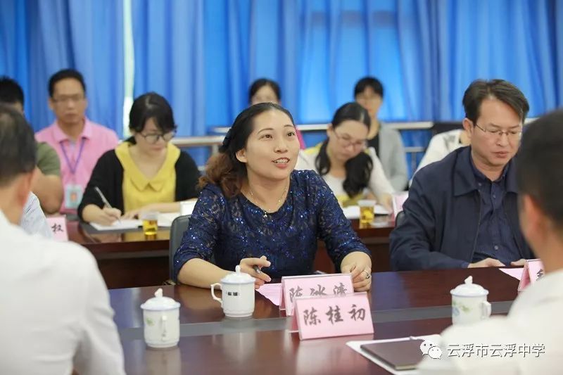 云浮市教育局党组书记、副局长陈桂初同志,市、区相关负责人以及工作室所有成员、助手和云浮中学初中部全体语文教师一同参加了此次揭牌仪式。