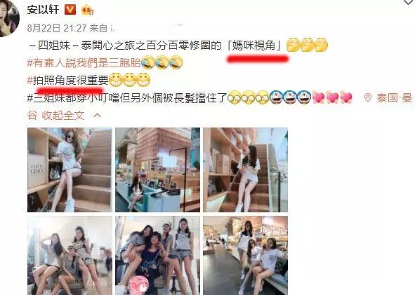 对于三姐妹的大长腿,不少网友也是认为与拍摄角度有关。不错,从下往上拍,人的腿的确会显得长一些。这一点,安以轩发文时就提到了拍照角度的重要性了,喜欢大长腿的妹子们以后都可以这样拍照啦,哈哈!