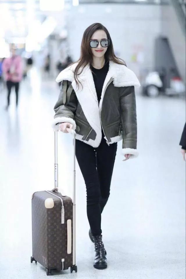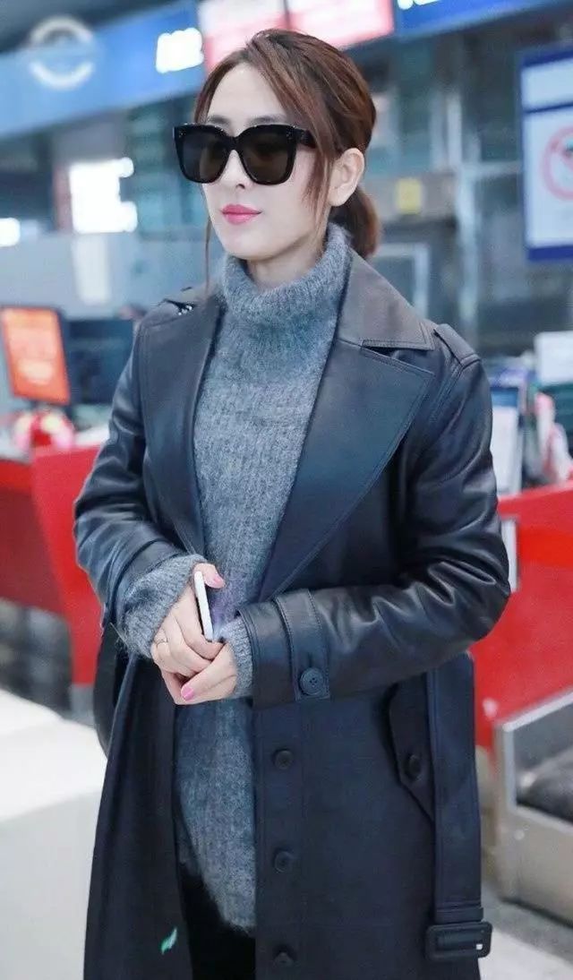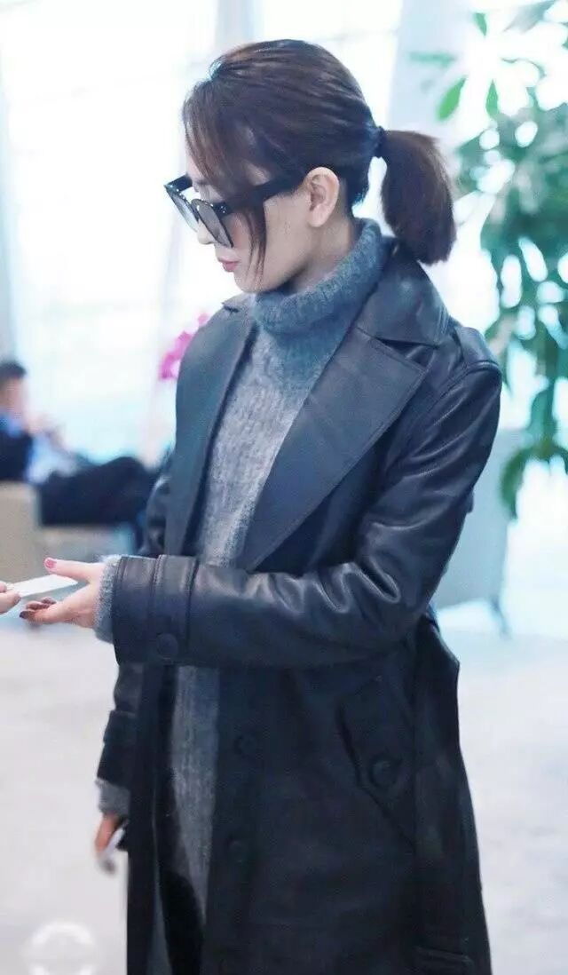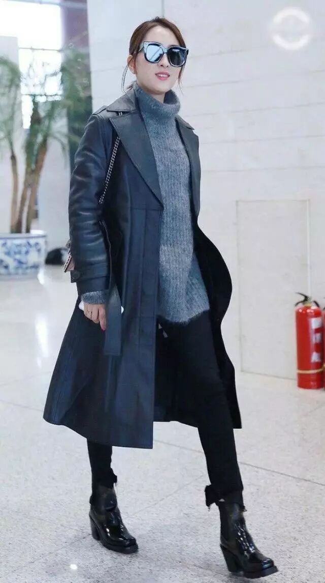 外搭黑色皮衣,脚踩英俊马丁靴,整体效果简单又时尚,还很保暖!36秒变26,这次绝对是马漂亮