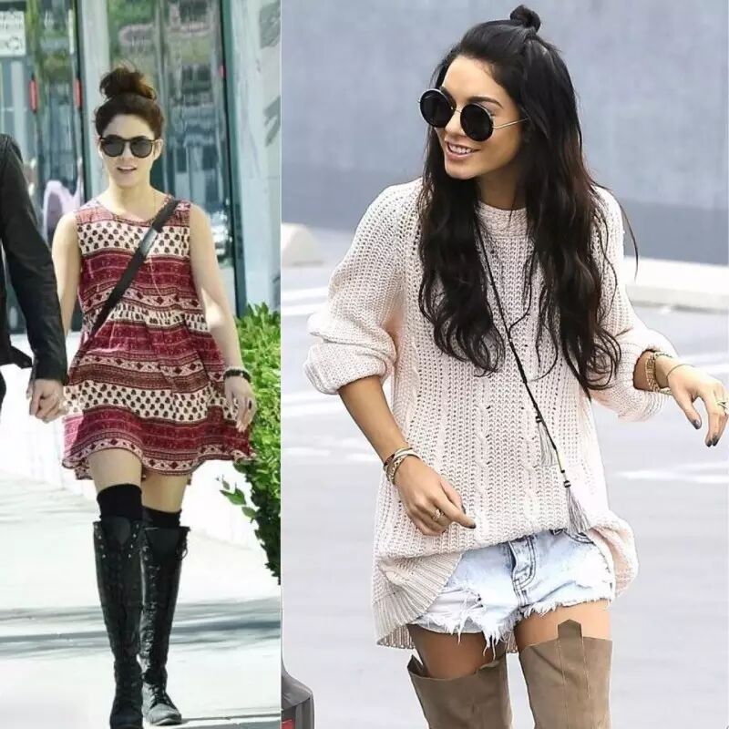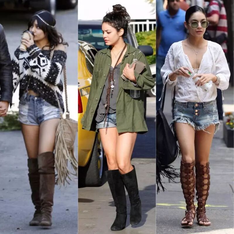 Vanessa搭配长靴的都是短款热裤,所以既然穿长靴就千万不要再穿长款牛仔裤,再把裤子塞进牛仔裤里了。