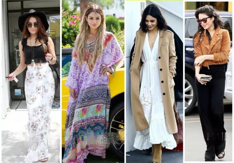 第二张民族风是很多女生不敢尝试的,穿得好就是异域公主,穿得不好就是张惠妹(我不是黑我只是举个例子)。Vanessa在这个造型中其实还是小露香肩,并不是全包裹。另外,要穿民族风就要做好全套民族风的准备,从发色到配饰。
