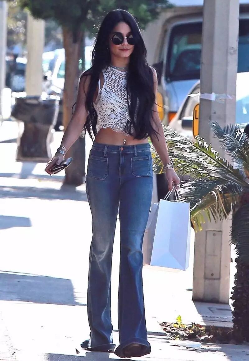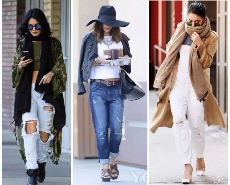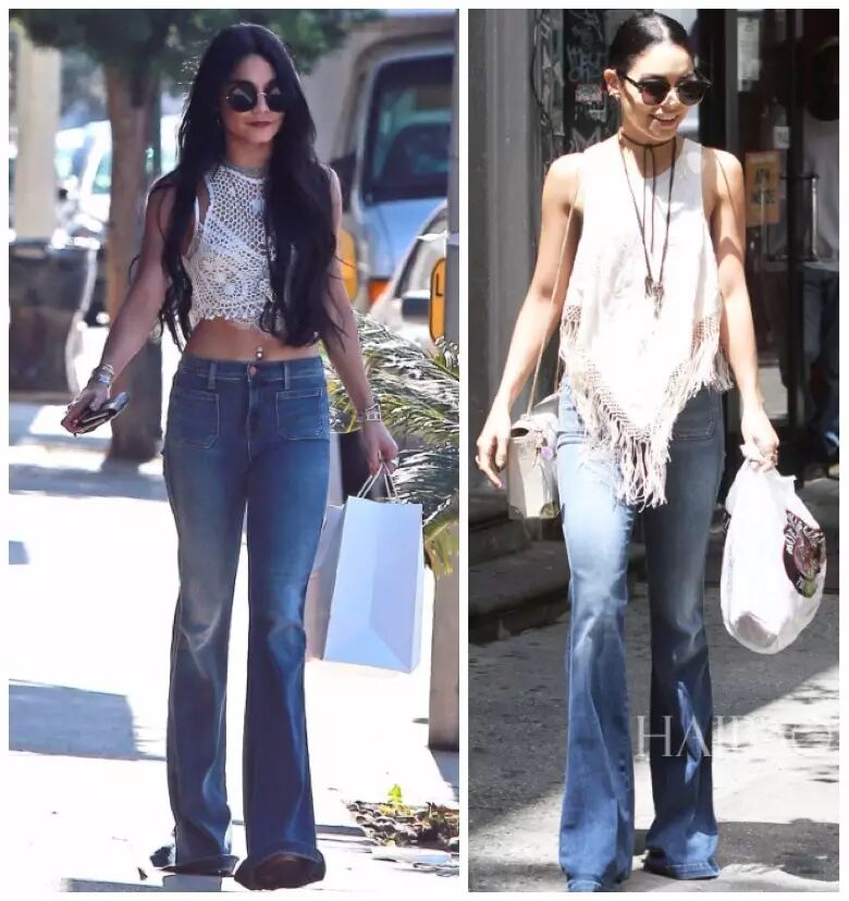 Vanessa穿牛仔裤的秘诀是会选择裤腿过长的,穿上高跟鞋后刚好拖到地上,连后跟都被隐藏起来,好像多出的几厘米是自己原本身高一样。