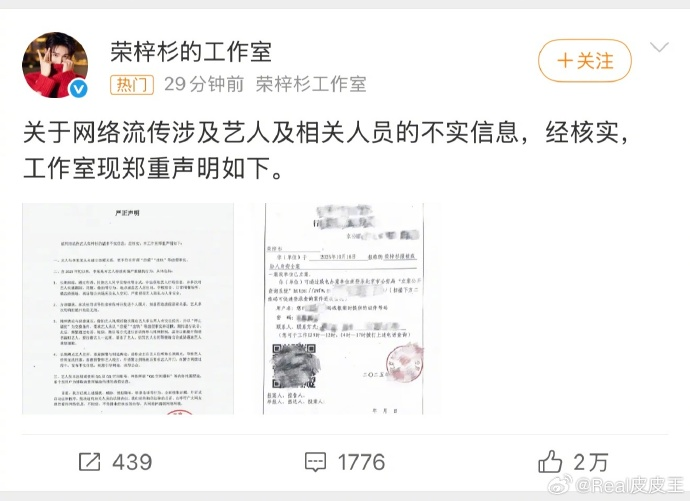 荣梓杉工作室发表声明,称双方从未确立过恋爱关系,李禹熹是私生粉,长期跟踪、骚扰、蹲点,精神胁迫还恶意施压。