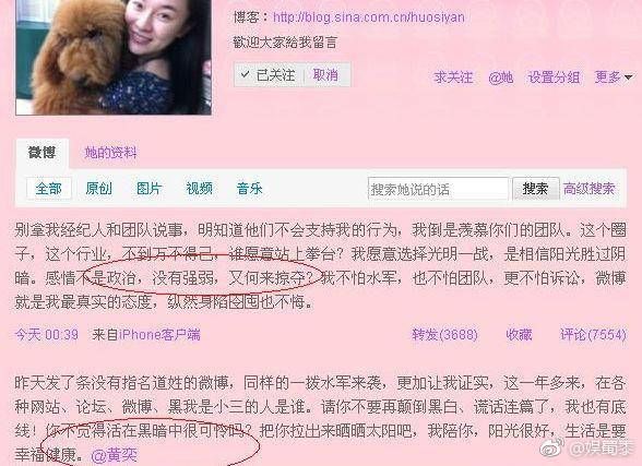 此后黄奕便经常买水军在网上攻击霍思燕“小三”、“不会做人”。虽然行为过激,不过也能理解黄奕的失恋之痛。
