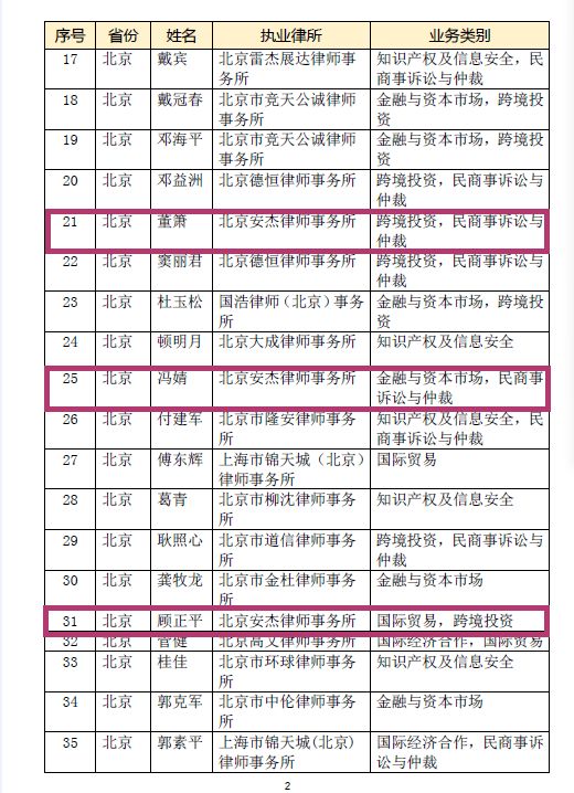 近日,记者从司法部网站获悉,全国千名涉外律师人才拟入选名单正式对外公示。安杰律师事务所顾正平、董箫、冯婧、任谷龙律师(深圳分所)入围该名单。