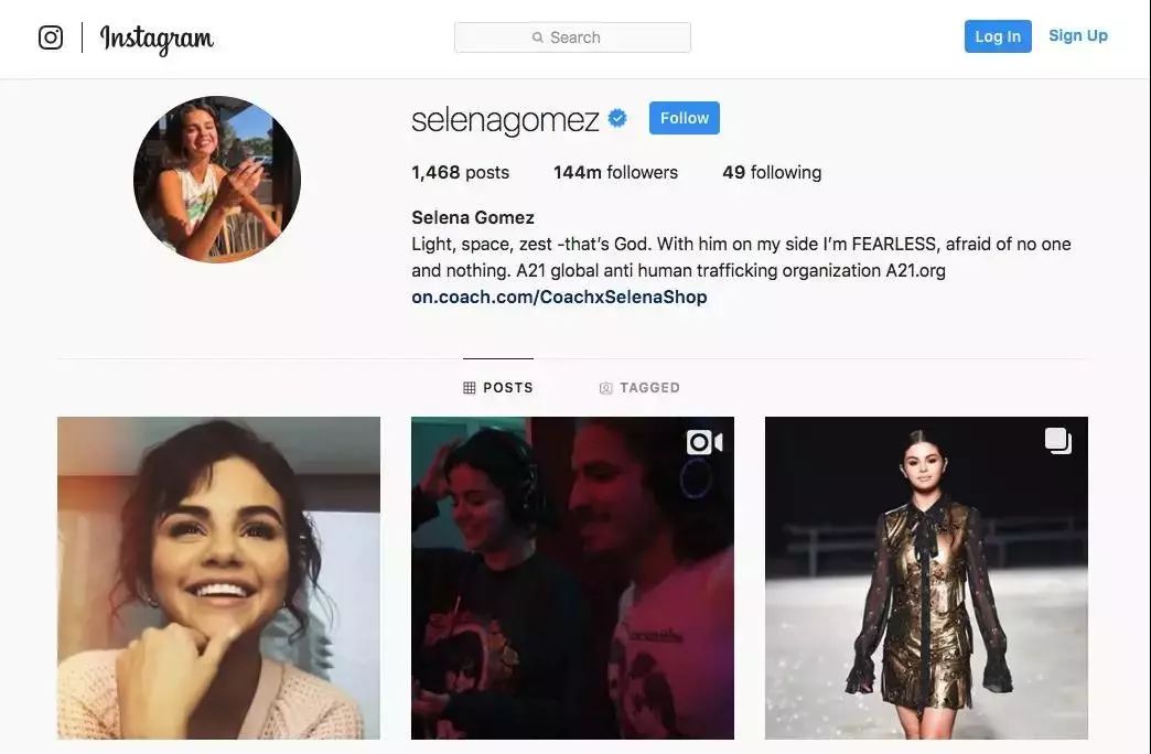 傻脸Selena Gomez在Instagram上坐拥超过1.44亿粉丝,是Instagram上关注者最多的用户,粉丝们无需购买八卦杂志、浏览八卦网站,随便划划手机就能尽知自己喜爱明星的一切。