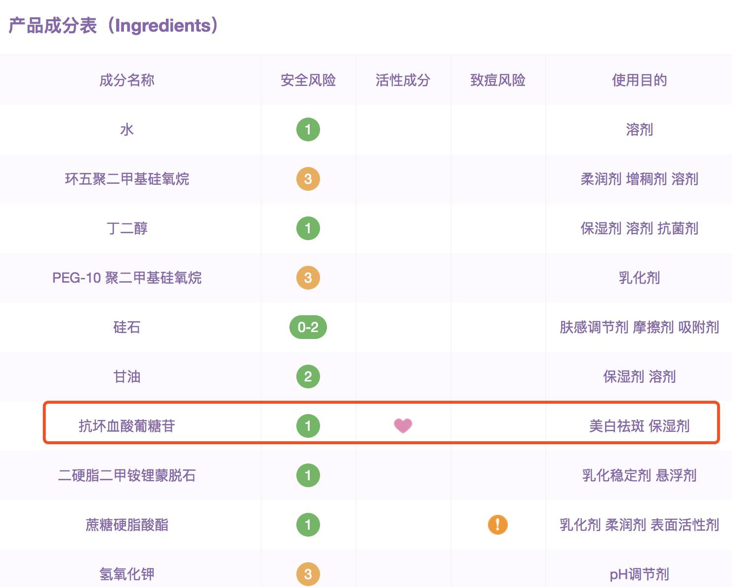 成分中添加了抗坏血酸葡糖苷