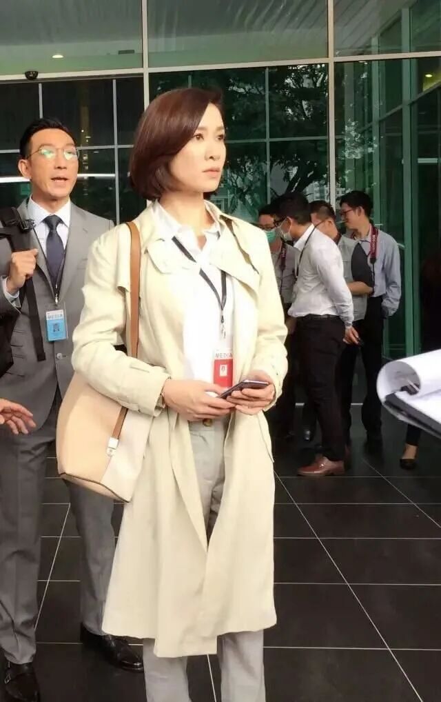 她穿上这样一件杏色的风衣外套,里面搭配的是那种白色的衬衫,还是非常的知性的,这个打扮的相对来说会显得比较成熟一点,只是她的五官还是很好看的,但就是不修图就不行了呀。