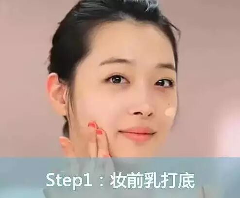 Step1:将有着打底液&抵挡紫外线功能的妆前乳薄而均匀地涂抹在脸上,用霜状的乳液即使多涂几层,底妆也不会堆积显得太过厚重。内里水润润,外表白皙,滋润饱满的皮肤get。