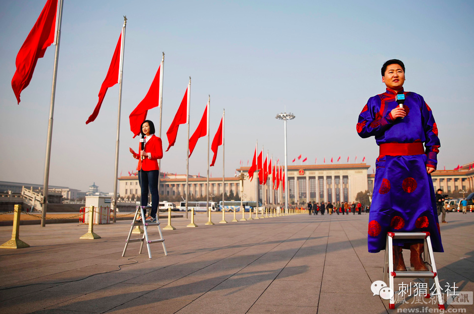 23、两会会期过半,电视、报纸、网络、手机……这些天,我们的视线被各种各样的两会场景占据。这张照片是两会中正在采访的记者,为了让大众看到不一样的两会,他们可真是“蛮拼的”!