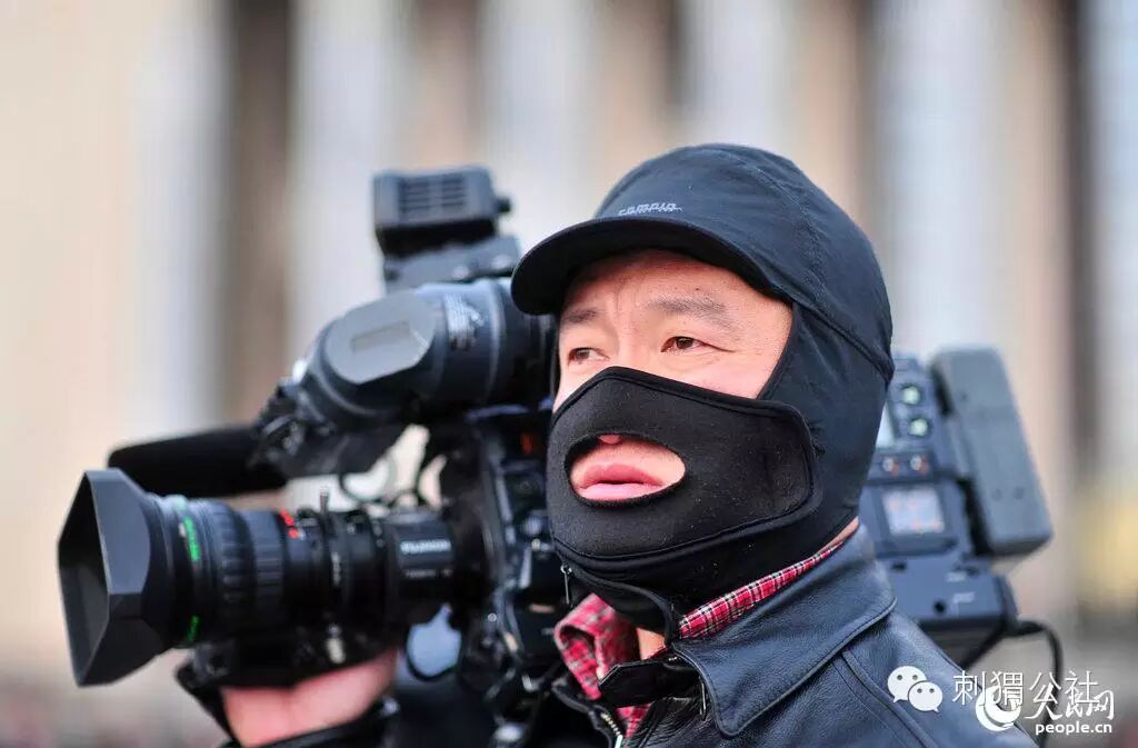 22、十一届全国人大五次会议在人民大会堂举行第二次全体会议。由于当天气温陡降至-1℃,寒风瑟瑟下,在人民大会堂外报道的记者一身黑色皮衣,头被防寒头套紧紧包裹。