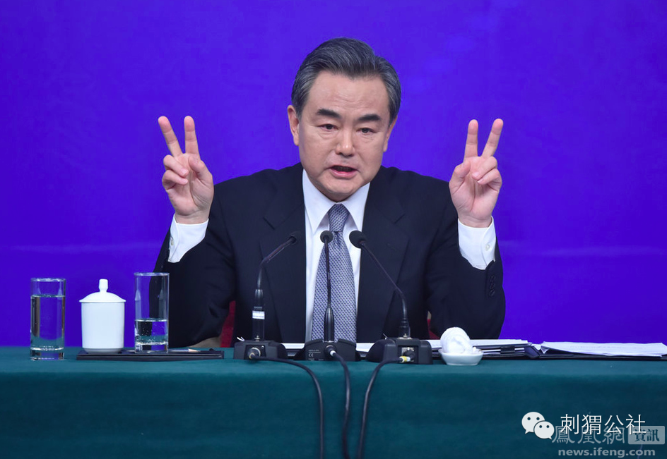 4、2015年3月8日,十二届全国人大三次会议新闻中心在梅地亚中心多功能厅举行记者会,外交部部长王毅就中国的外交政策和对外关系相关问题回答中外记者提问,在回答中,他比划出了“剪刀手”(实际为表示双引号)。