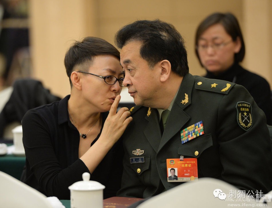 10、2015年03月06日,全国政协十二届三次会议文艺界联组会举行,明星委员参与讨论、建言献计。图为宋丹丹和黄宏在一起交谈。
