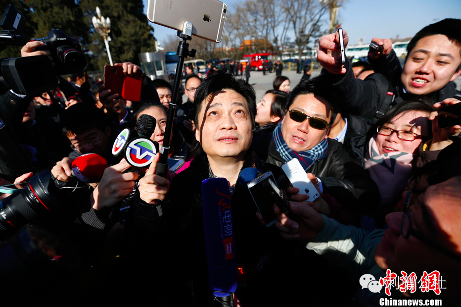 14、2015年3月5日,北京,教育部部长袁贵仁被拦到发言台。