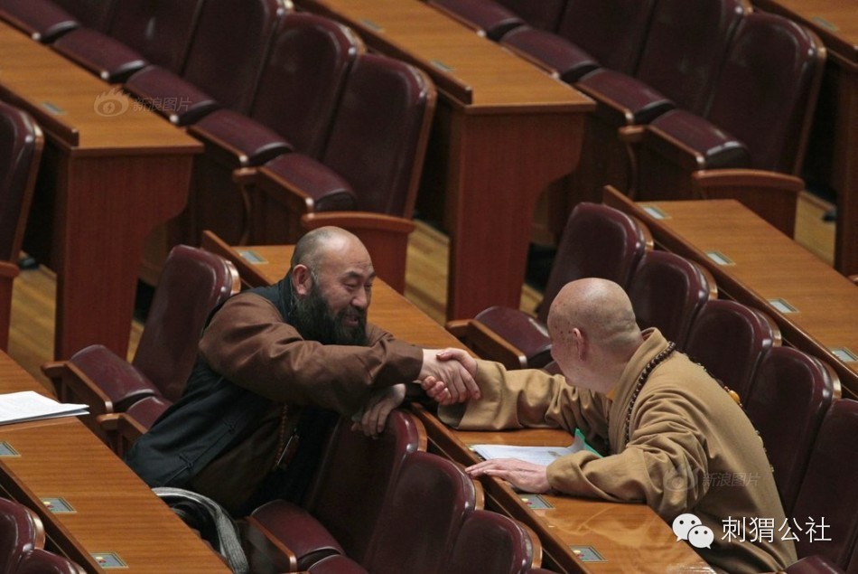 31、2015年3月3日,北京,全国政协十二届三次会议开幕会在人民大会堂举行。两名宗教界代表握手交谈。