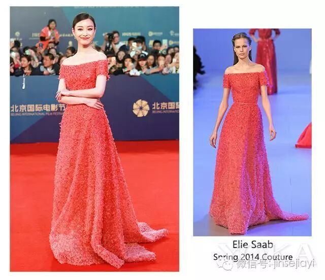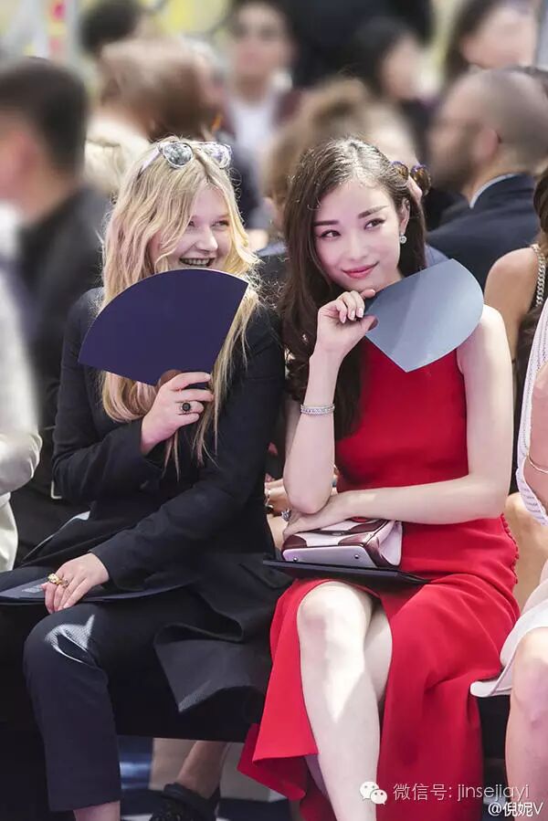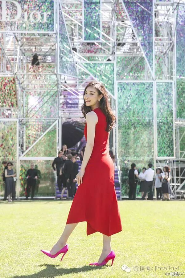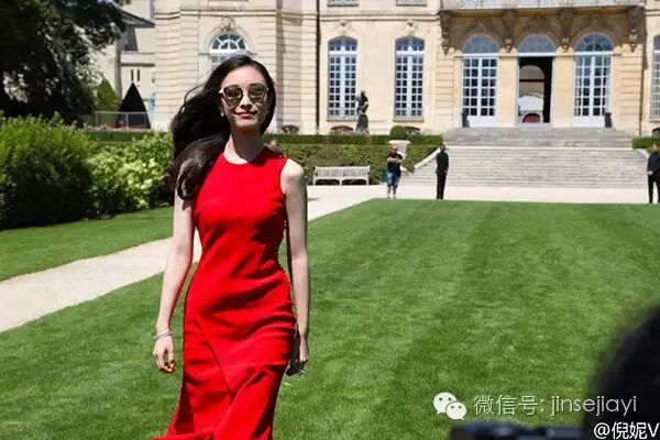 红色对于西方来说,不是什么讨喜的颜色,但倪妮依旧选择红色长裙,亮相2015 Dior秋冬高定秀场。