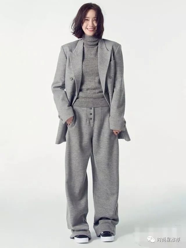 还有这中全色系的西装造型,下身这条裤子就有点不适合林允儿了,不过整体看起来很是保暖呢,脚上的这双黑白鞋也是十分的独特吸睛,一双笑眼更是像“小鹿眼”一样把魂儿都勾走啦,面对着镜头大笑着的林允儿喜悦之前都快溢出屏幕来了,单手插着口袋的林允儿看起来也是霸气中略带着甜美系的。