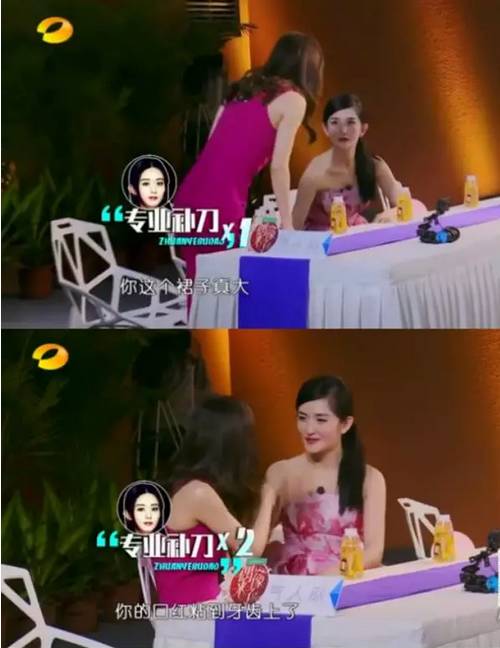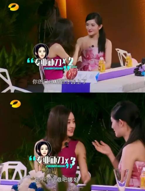 当着镜头的面不止一次的提醒谢娜牙齿上沾了口红: