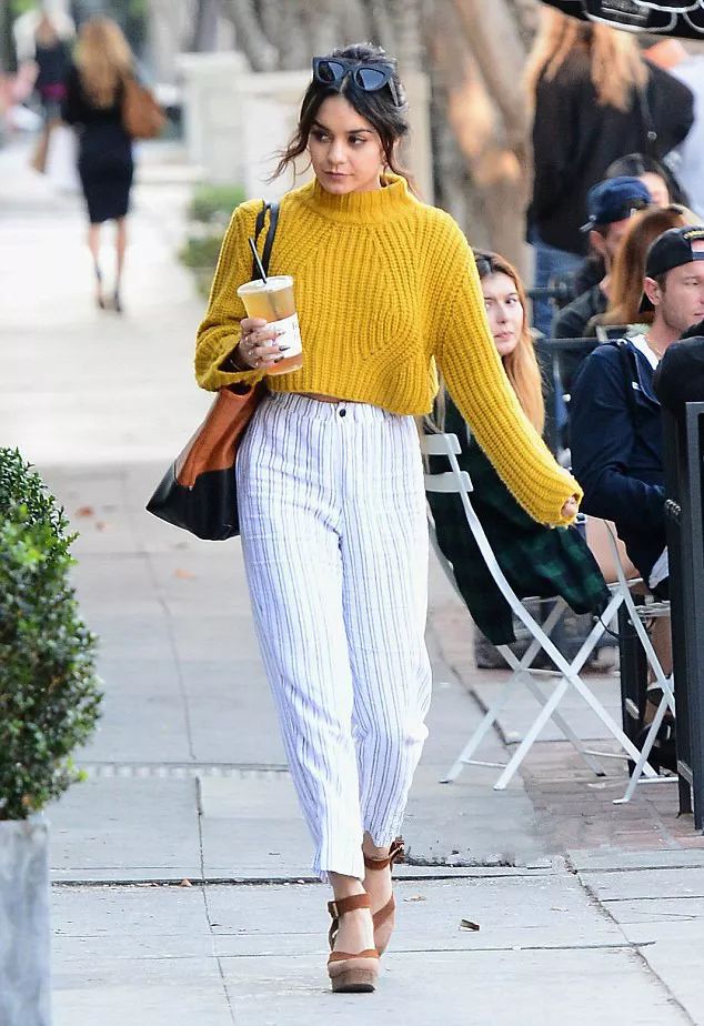 条纹阔腿裤,更是增加了又一好处,在里面偷偷穿上12公分的高跟鞋也看不出来呢,同时又优雅充满女人味~