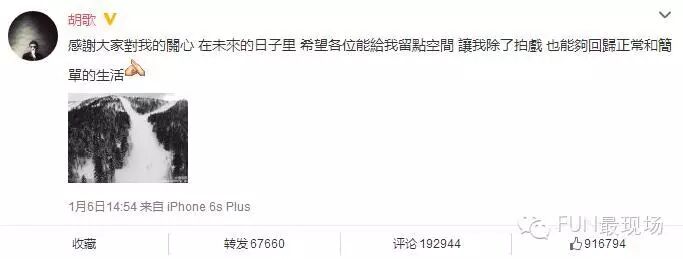 胡歌新恋情曝光了,是一个富二代,长相一般,圈外人。胡歌也没有否认,只是发了一条微博。呆呆截图的时候,都有90多万人点赞了。“希望各位能够给我留点空间,让我除了拍戏,也能够回归正常和简单的生活。”
