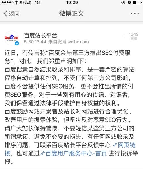 8 百度要推出SEO付费服务? 官方辟谣:不会推出此类服务