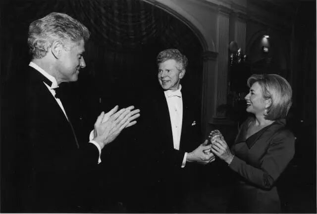 范克莱本与美国总统克林顿、希拉里夫妇亲切交谈
