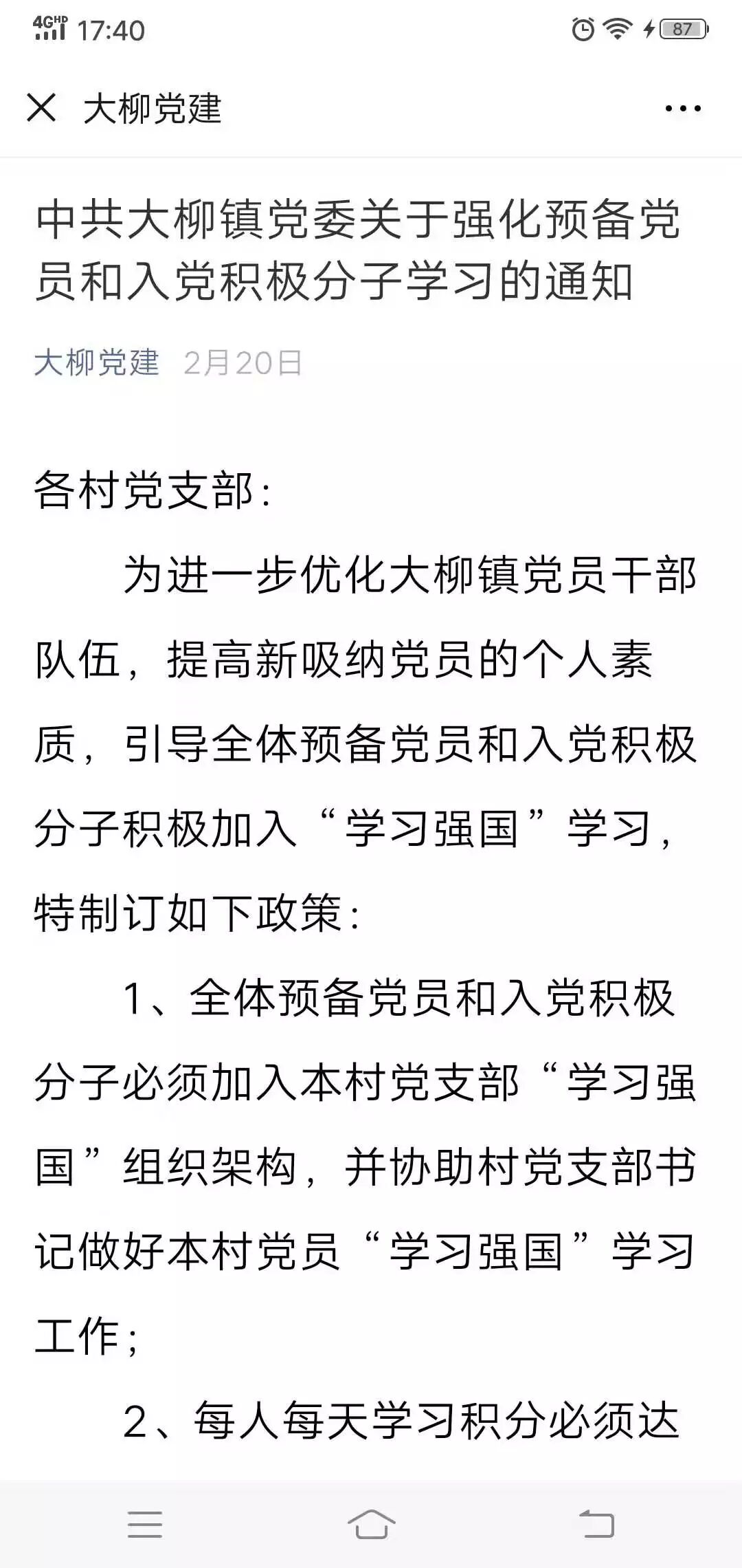 大柳镇将学习强国积分成绩作为党员转预备、转正的一项重要考核指标,既提升了农村党员的素质,也增强了党员的集体感、荣誉感。更加有利于农村基层组织工作的顺利推进。