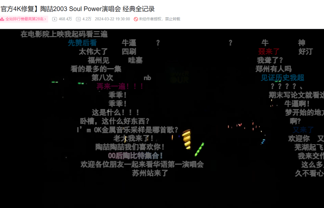在视频网站,2003年那场状态巅峰的演唱会,仍再被老人反复回味,被新人推上神坛。