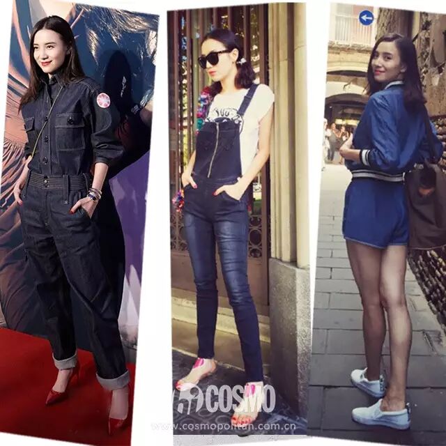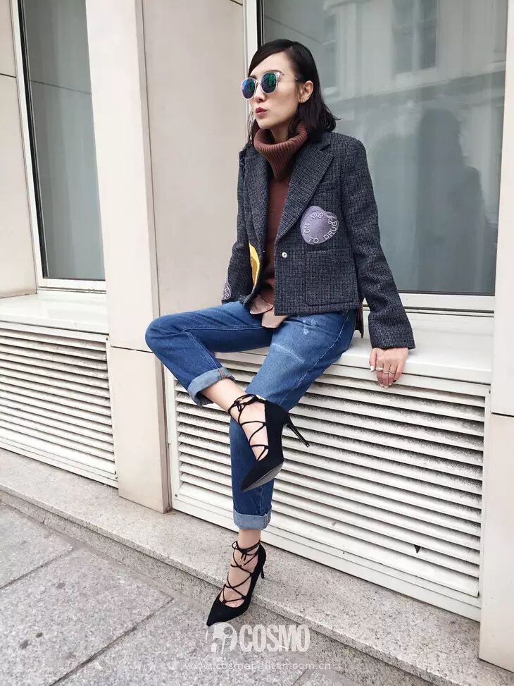 帅气的小西装搭配牛仔裤和今年超火的绑带高跟鞋,不得不说宋佳帅起来也真是没谁了。