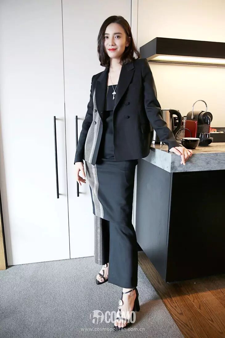 西装搭配当然也可以非常不一样,选择有拼色元素的款式,高挑的个子让宋佳驾驭起这种套装不费吹灰之力。