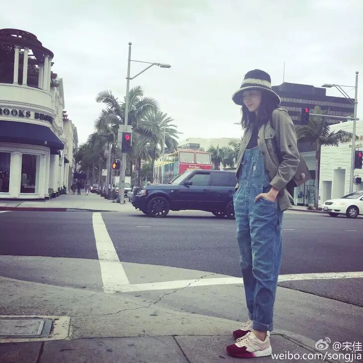 减龄的背带裤宋佳同样穿的很好看,搭配一件工装外套,撞色的球鞋非常抢眼。