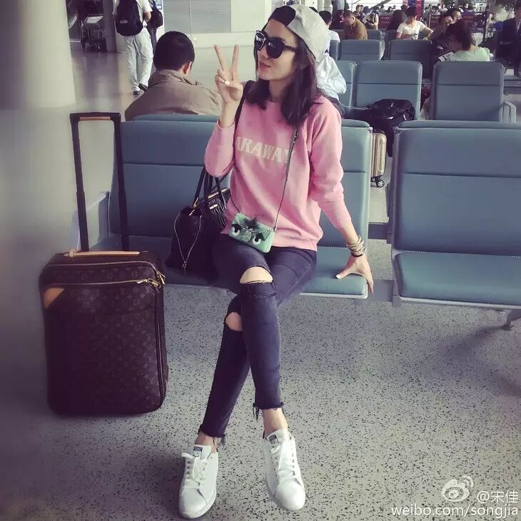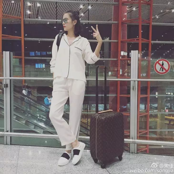 不少女明星都尝试过这套非常难驾驭的睡衣装,但是宋佳却很轻松的穿出了自己的味道,搭配黑白球鞋,超级抢眼的机场街拍。