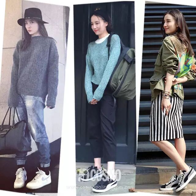 女明星都爱街拍拍街拍,宋佳也不例外,今年最火的细条丝巾,西装搭配铅笔裤和球鞋,优雅的同时又潮女味道十足,绝对的混搭高手。